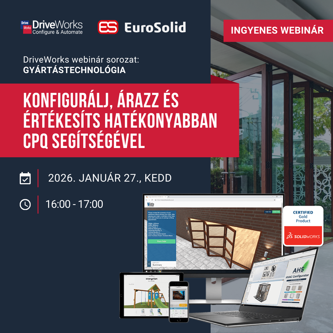 A webinár során a DriveWorks termékszakértői megosztják tapasztalataikat arról, hogyan építhető fel egy hatékony CPQ megoldás DriveWorks alapokon.