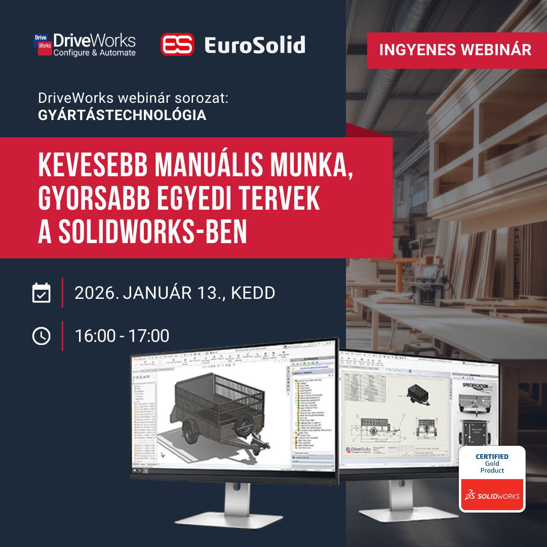 A webináron bemutatásra kerül, hogyan automatizálható a SOLIDWORKS® tervezési folyamata DriveWorks segítségével, az egyedi termékek gyorsabb és pontosabb létrehozása érdekében.