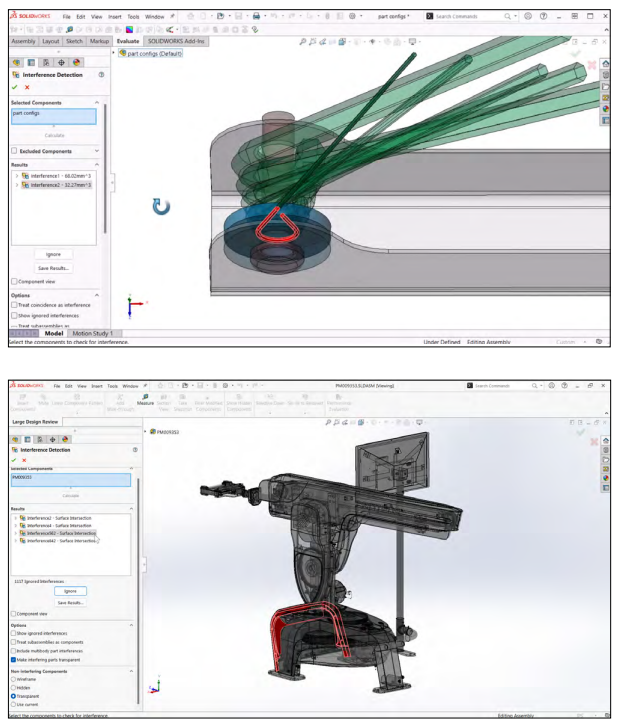 Az Áthatásvizsgálat azonosítja az összeállításon belüli alkatrészek közötti geometriai ütközéseket és átfedéseket. Ez a funkció lehetővé teszi a mérnökök számára, hogy azelőtt észleljenek hibákat, mielőtt megkezdődne a prototípus- vagy termékgyártás. Az áthatások korai észrevétele kulcsfontosságú, mivel elkerülhetők a költséges későbbi javítások.